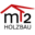 Firmenlogo des Unternehmens Mühlbacher Holzbau GmbH. Weißes Logo vor roten Hintergrund.